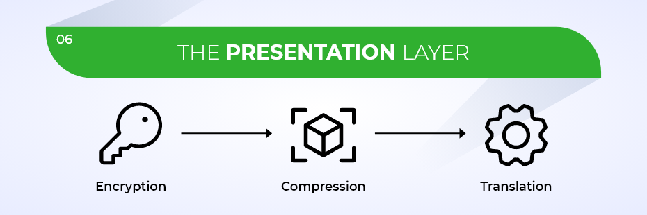 This layer is primarily responsible for preparing data so that it can be used by the application layer; in other words, layer 6 makes the data presentable for applications to consume. The presentation layer is responsible for translation, encryption, and compression of data.