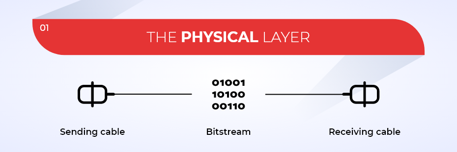 This layer includes the physical equipment involved in the data transfer, such as the cables and switches. This is also the layer where the data gets converted into a bit stream, which is a string of 1s and 0s. The physical layer of both devices must also agree on a signal convention so that the 1s can be distinguished from the 0s on both devices.